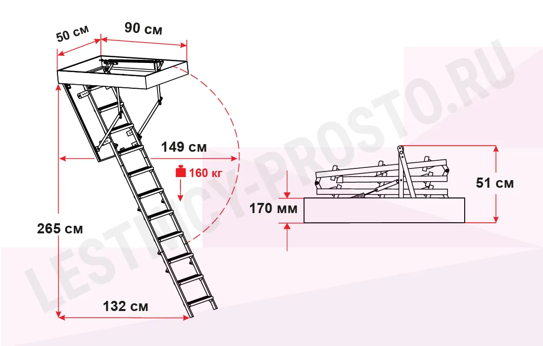 Чердачная лестница OMAN MINI POLAR 50×90 см, h-265 см