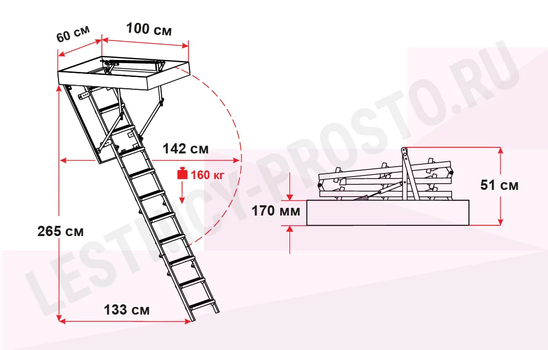Чердачная лестница OMAN MINI POLAR 60×100 см, h-265 см