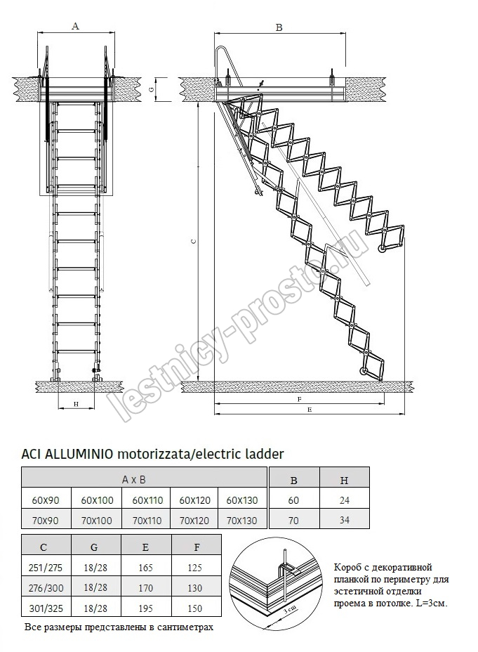 Чердачная лестница с электроприводом. Fantozziscale Motor Base 70×100 см