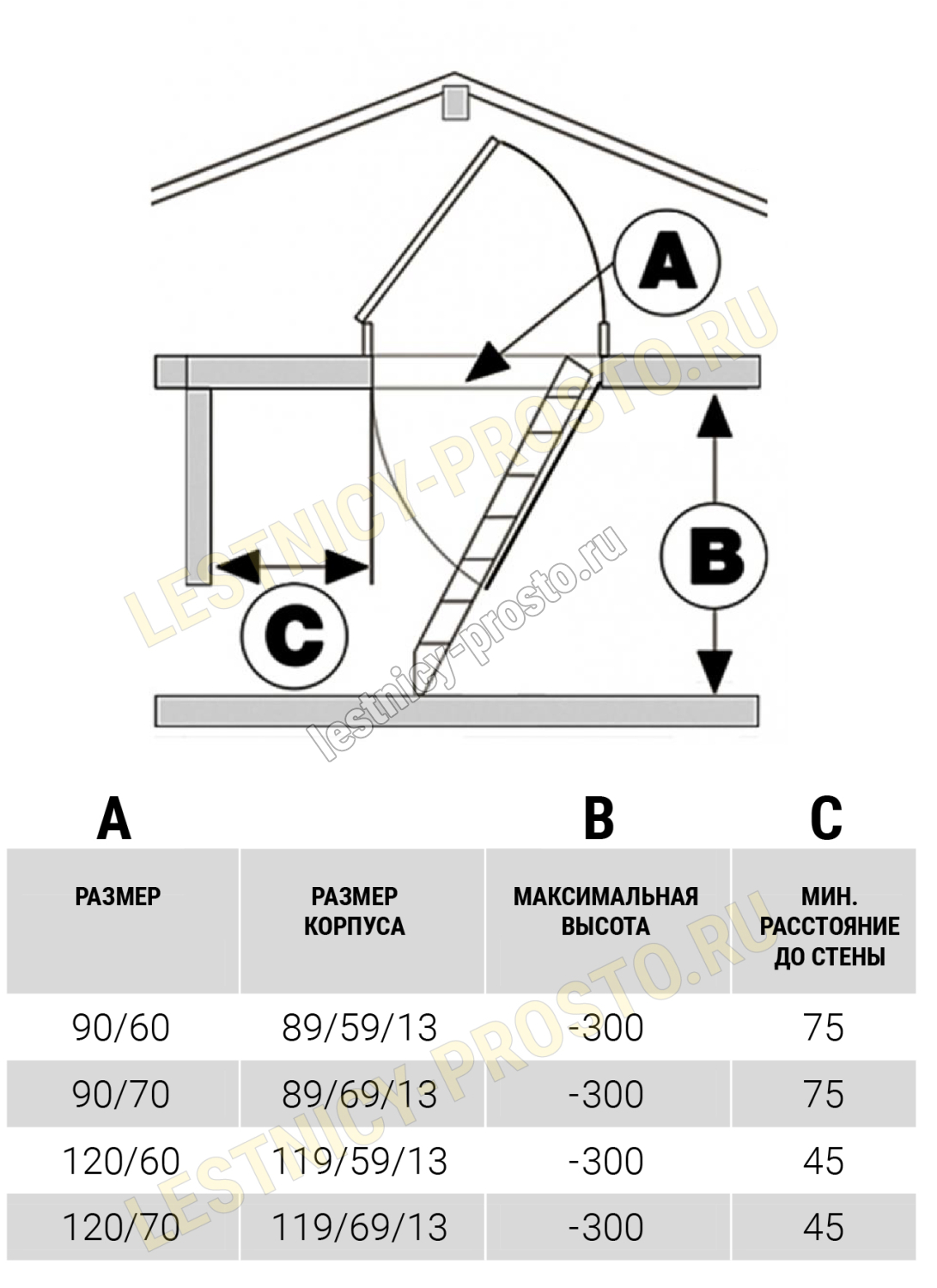 Чердачная ножничная лестница MINKA ELEGANCE 70×90 см, h-300 см