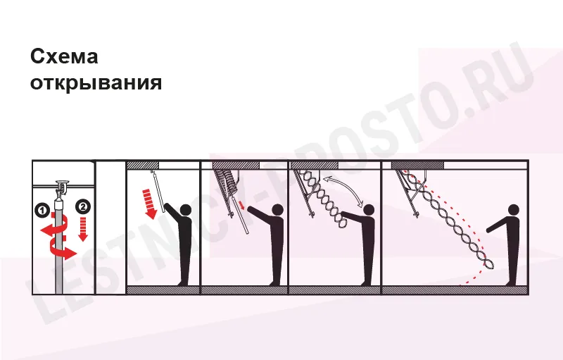 Все элементы лестницы выполнены из экологически чистых материалов и обработаны веществами, не содержащими тяжелых металлов. На ступенях антискользящие насечки. Короб лестницы изготовлен из металла. Термоизоляционная крышка типа "сэндвич" утеплена пенопластом, облицована с двух сторон ДСП белого цвета. Короб люка с уплотнителем. В комплекте деревянный стержень для открывания лестницы.