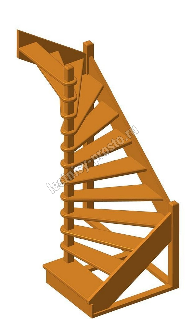 Деревянная межэтажная лестница ЛЕС-01 2720-2920 проем 1630-1120, Лиственница