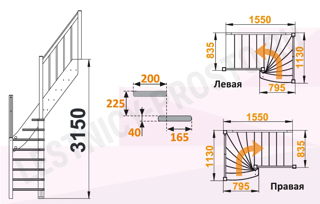 У лестницы  10 вариантов размера