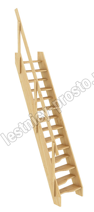 Ступени и поручень лестницы изготовлены из дуба, остальные элементы из сосны.