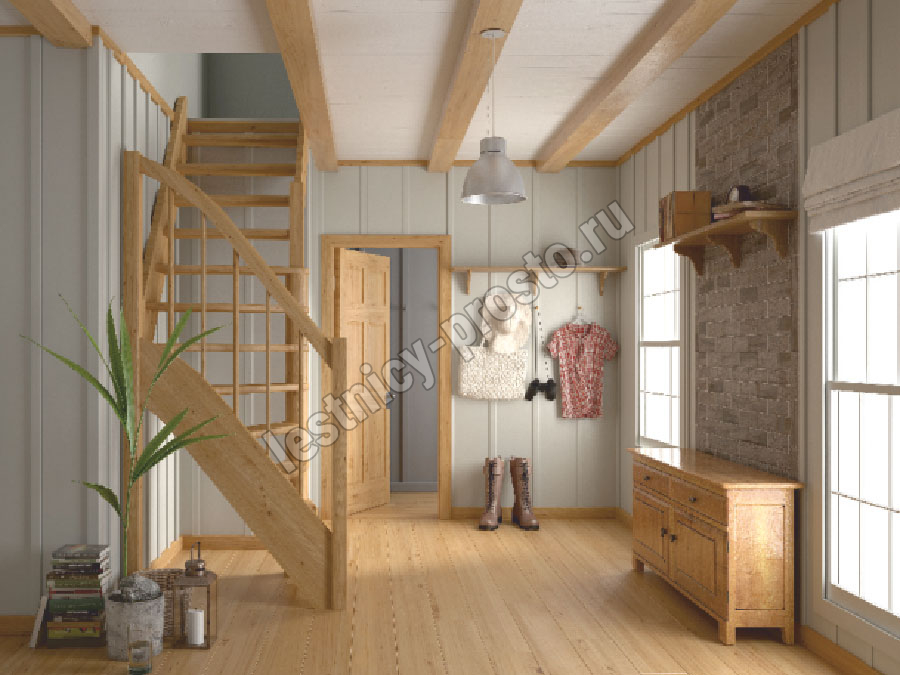 Ступени и поручень лестницы изготовлены из дуба, остальные элементы из сосны.