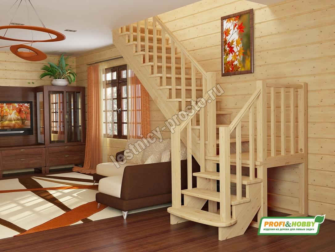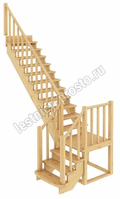Базовый комплект включает в себя деревянные элементы лестницы с подступёнками и ограждения без какого-либо покрытия.