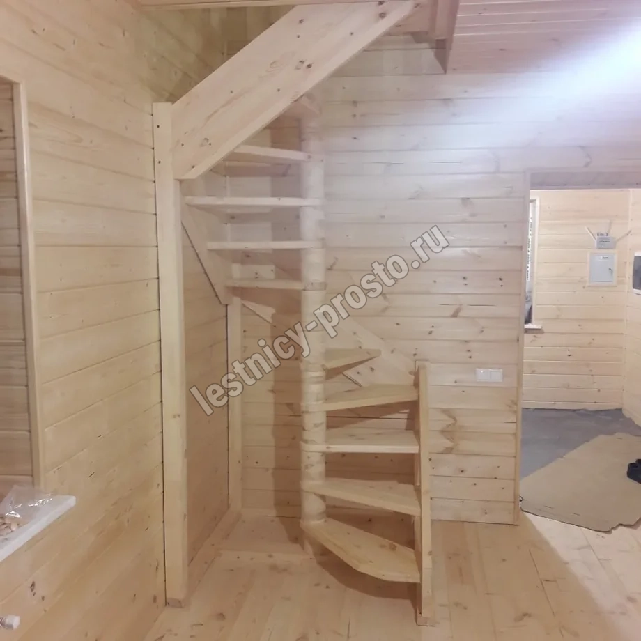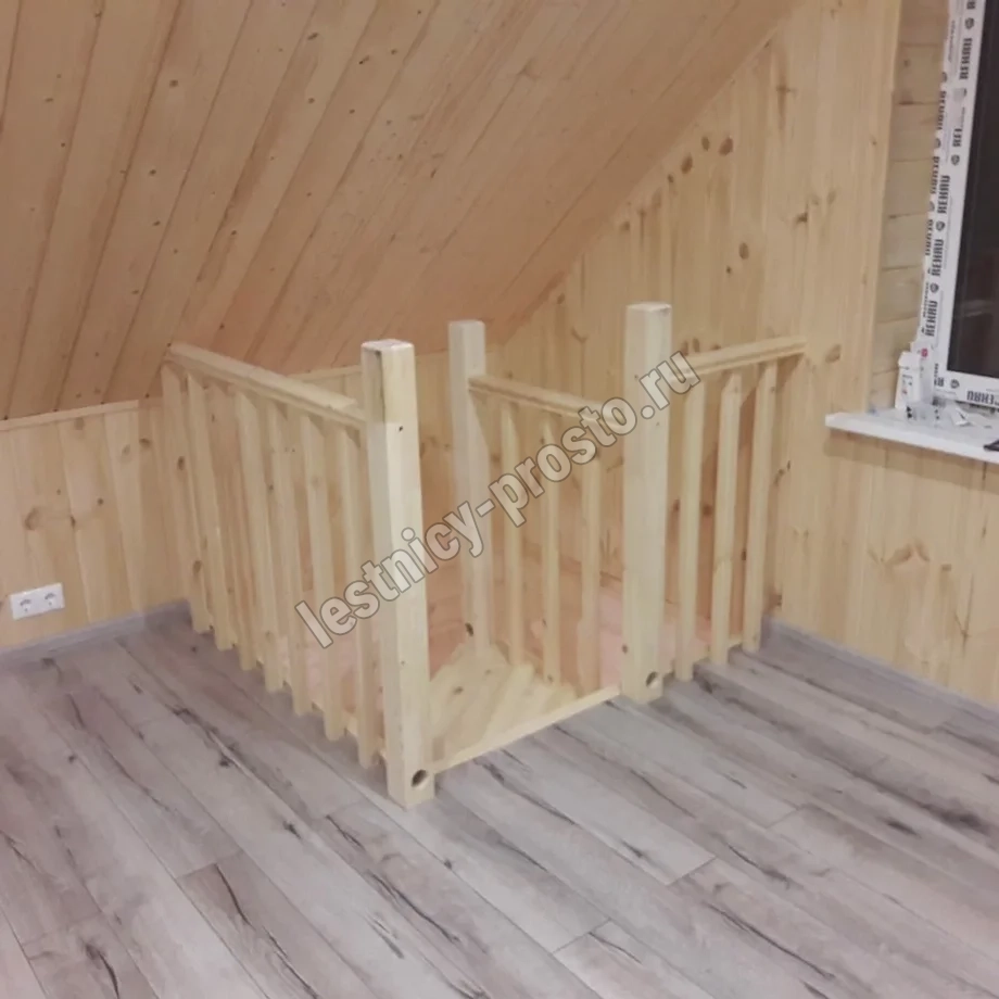 Базовый комплект включает в себя деревянные элементы лестницы и ограждения без какого-либо покрытия.