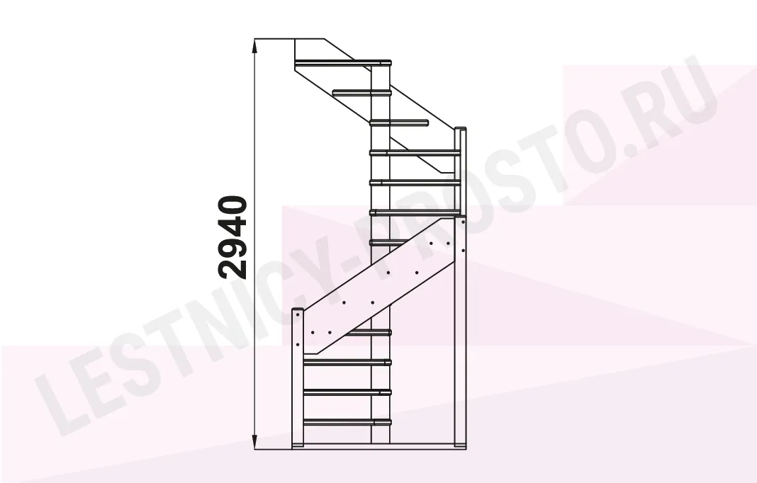 Лестница ЛС-1.2хм с поворотом налево