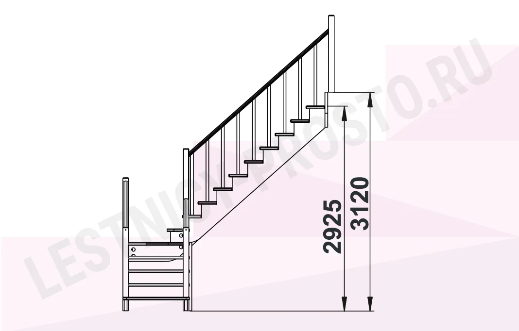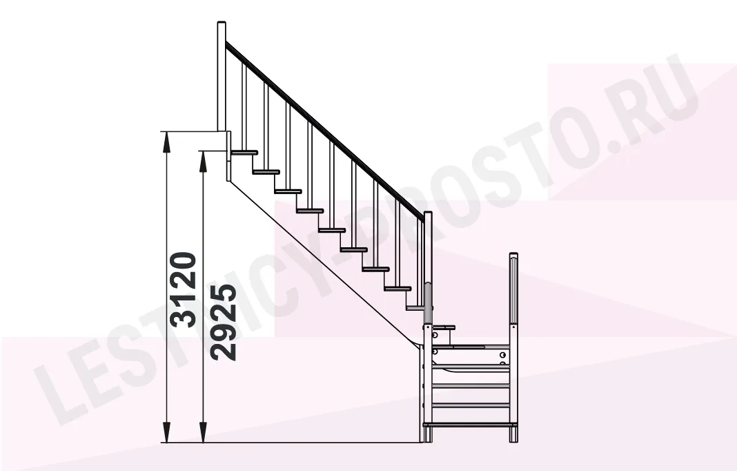 Базовый комплект включает в себя элементы лестницы и ограждения без какого-либо покрытия.