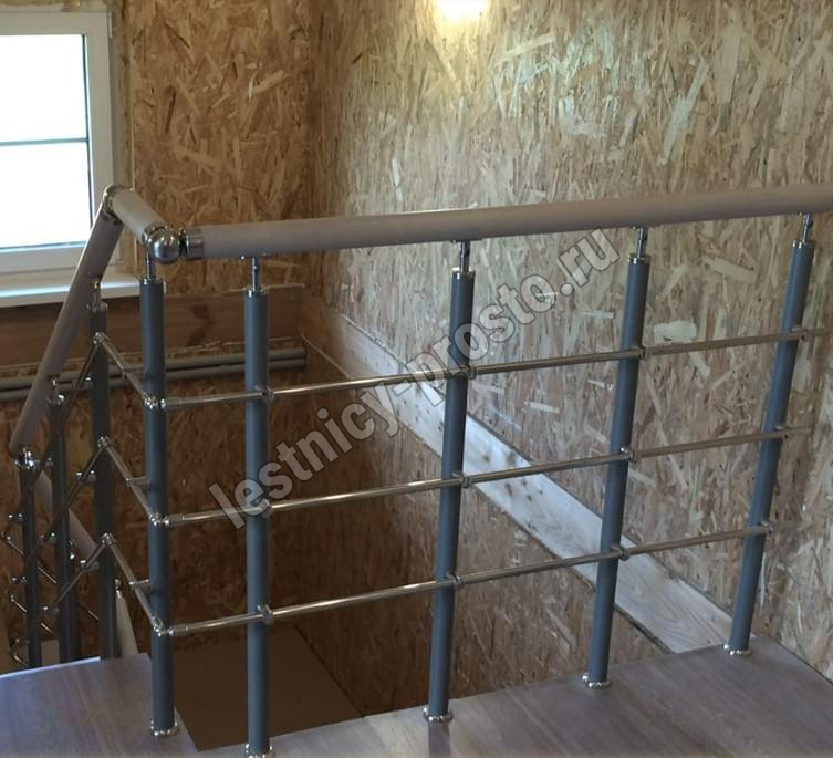 Комплект ограждений для Г-образной лестницы PROSTO MONO из 13 ступеней.