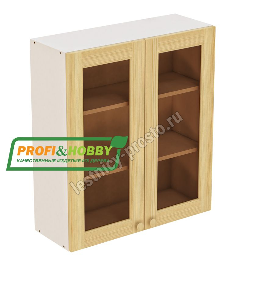 Шкаф навесной 2 двери 800х340х960 + фасад сосна под стекло без покраски