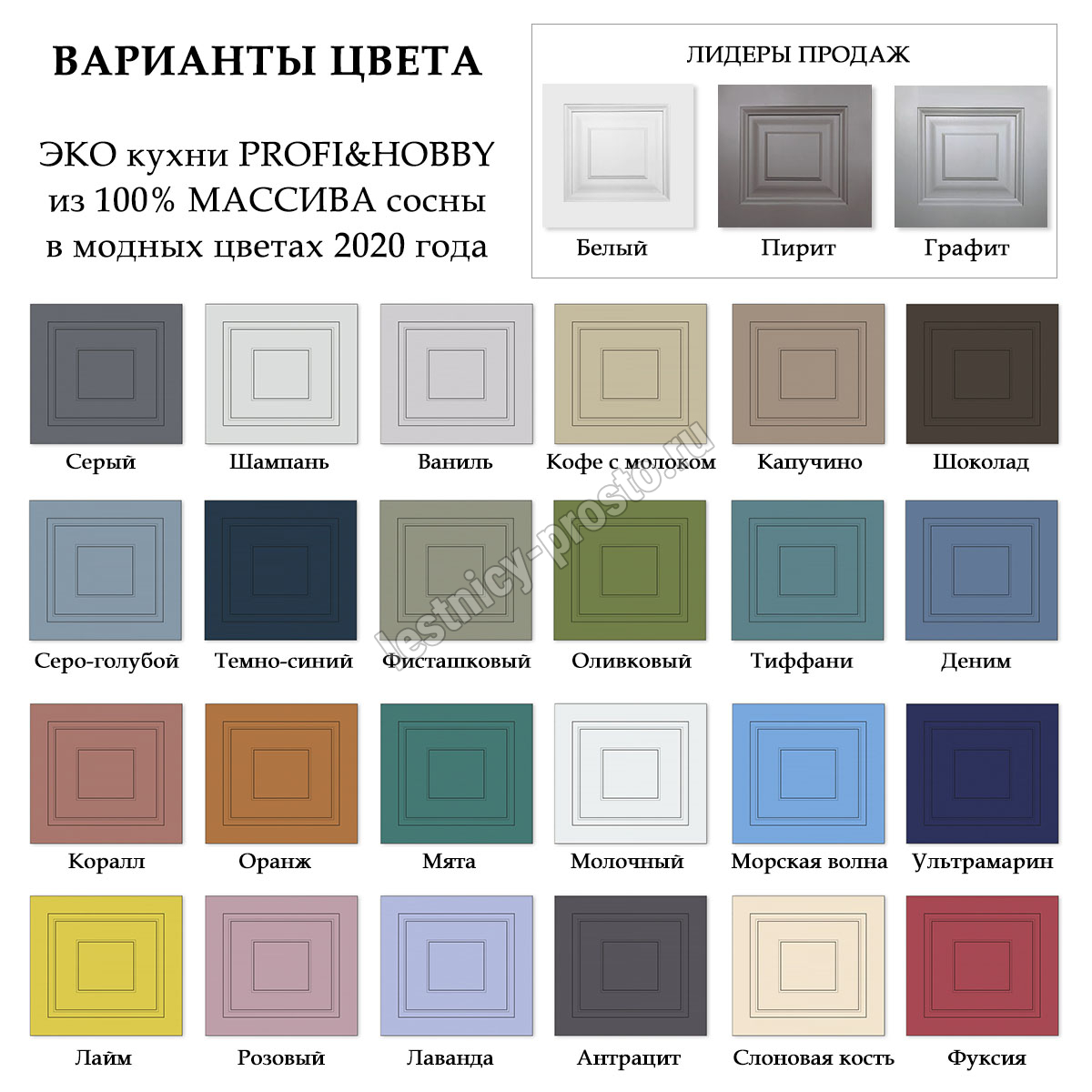 Компактный кухонный гарнитур из 100% массива сосны шириной 1,2 и высотой 2,14 метра (верхние шкафы высотой 72 см). Подойдёт для небольшой кухни, квартиры-студии или загородного дома. Цвет на выбор - 27 вариантов (при заказе кухни в нашем интернет магазине просьба указывать название цвета в комментариях).