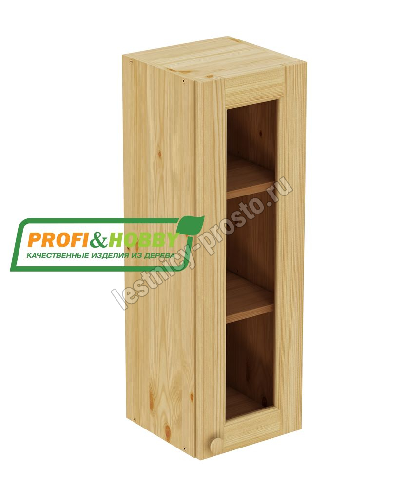 Шкаф навесной 300 х 300 х 900 под стекло, сосна, бесцветный акриловый лак