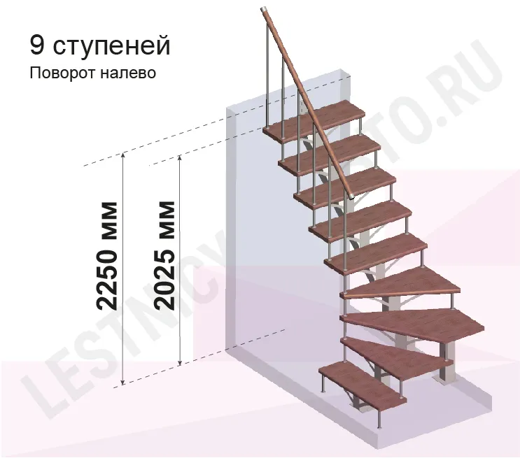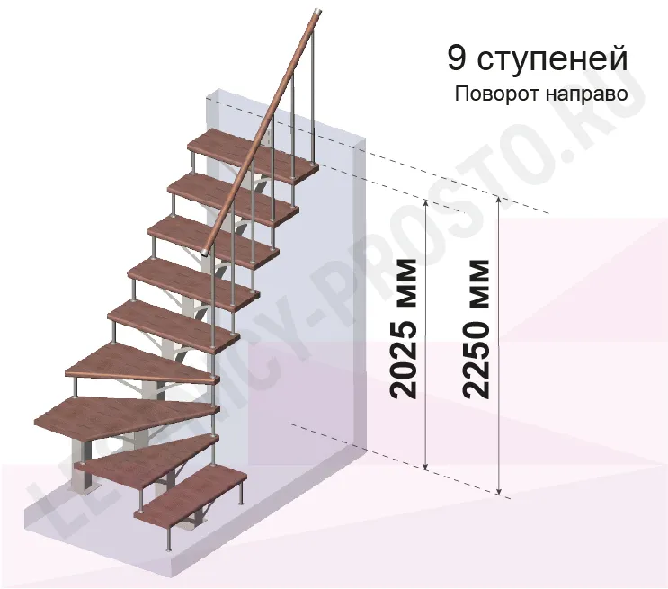 Лестница PROSTO MONO Г-образная h225 см, ступени хвоя