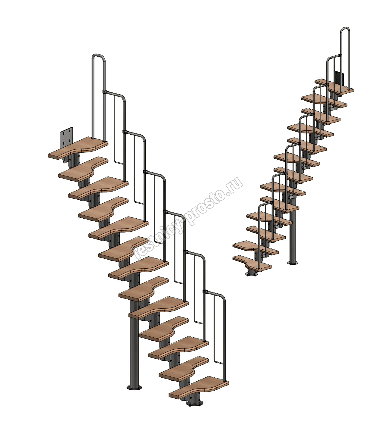 Лестница Prosto Urban Black гусиный шаг 700 мм, h234-336 см (13 ступеней), дуб