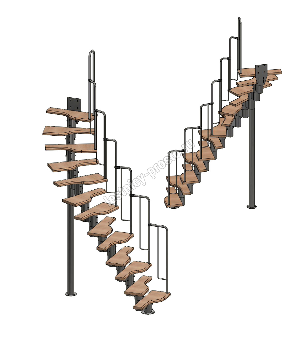 Лестница Prosto Urban Black гусиный шаг 700 мм, h234-336 см (13 ступеней), берёза мультиплекс