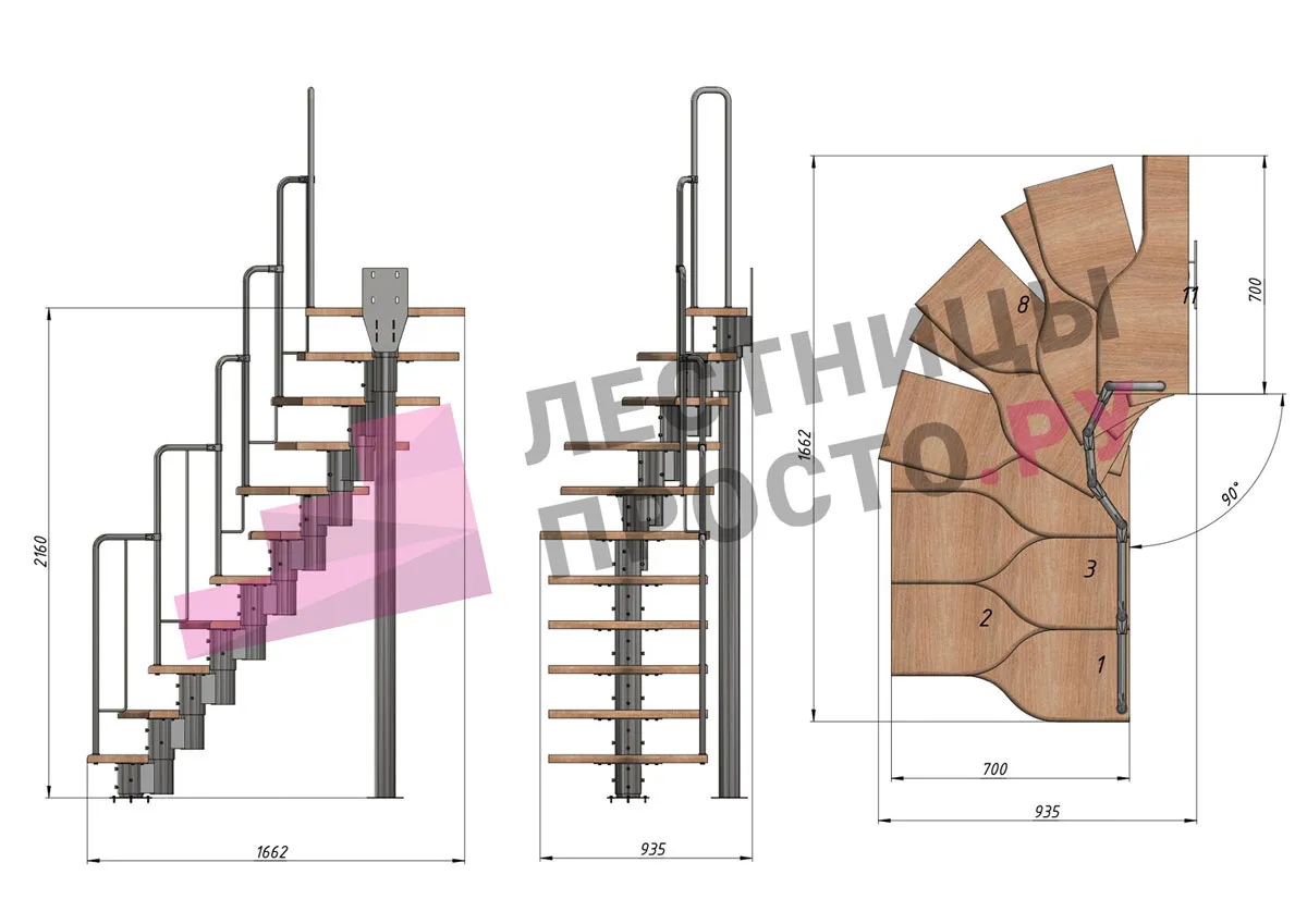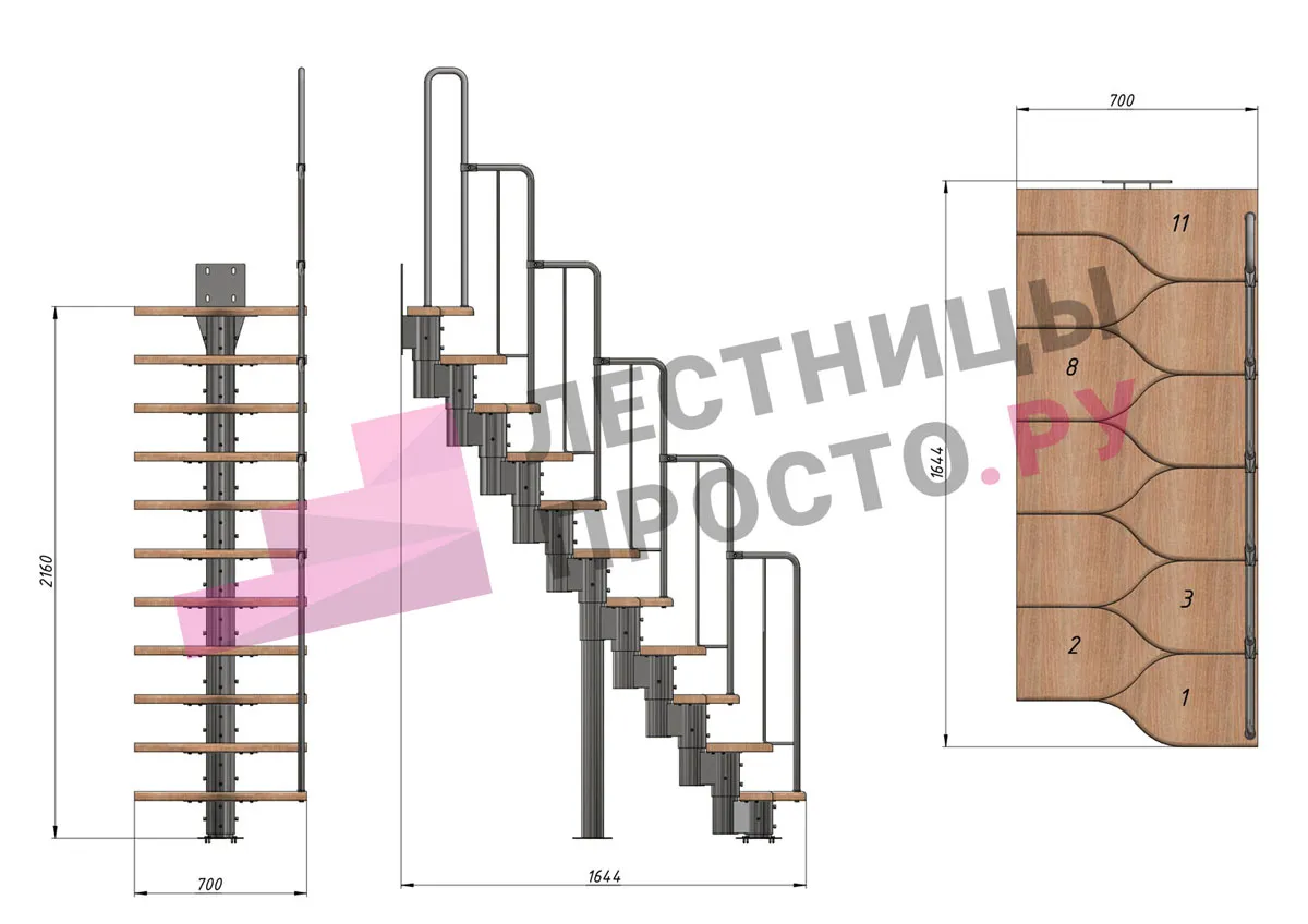 | Лестница Prosto Urban Black гусиный шаг 700 мм, h216-312 см (12 ступеней), бук |