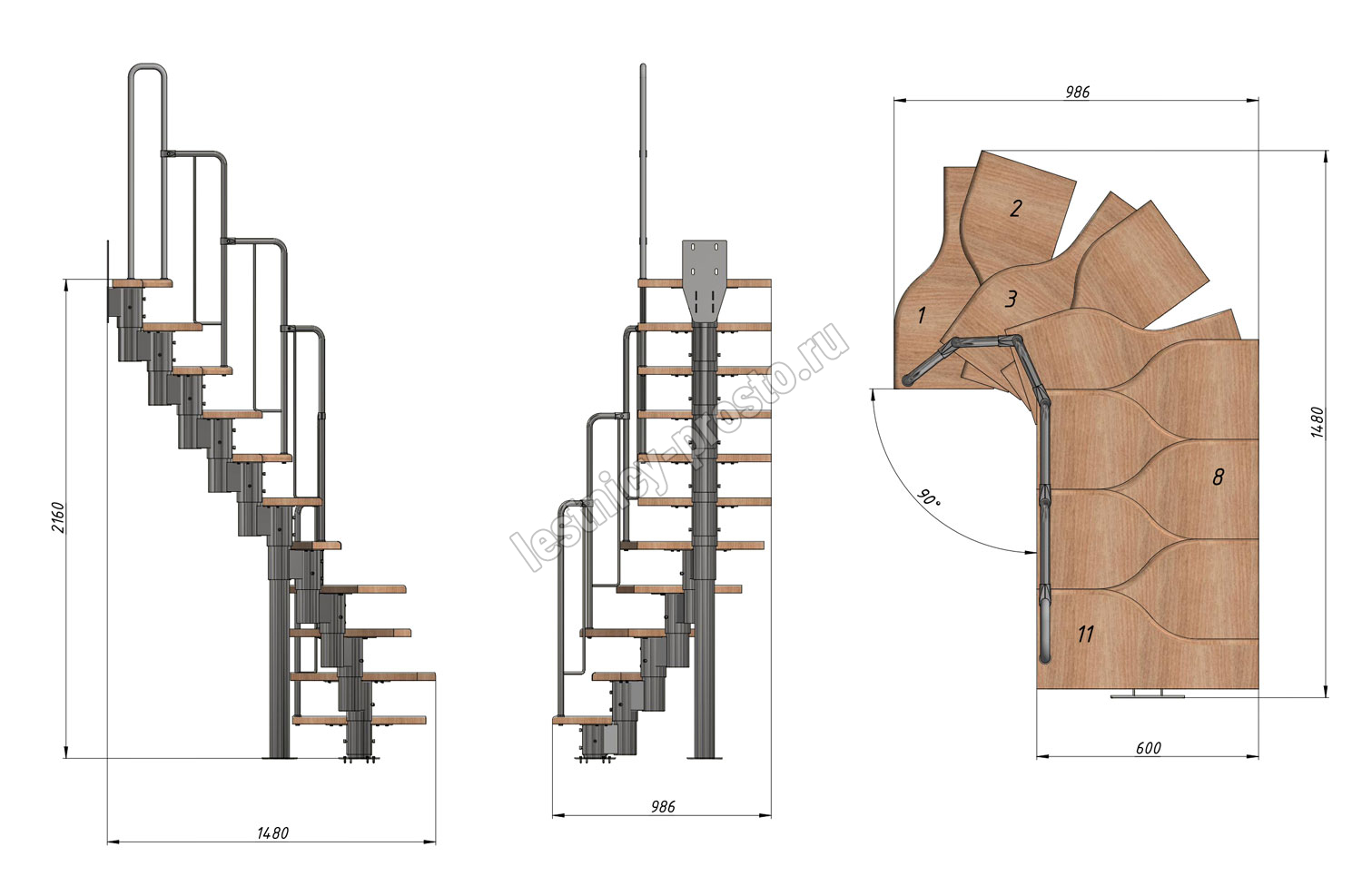 -Возможность установить лестницу как прямую, так и с поворотом внизу или вверху; при этом нужно понимать, что поворот менее удобен, чем прямой участок лестницы.