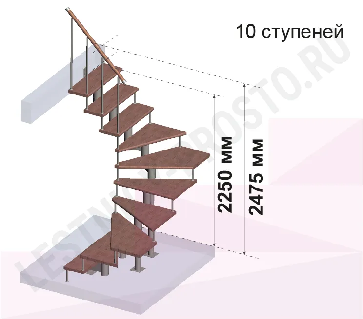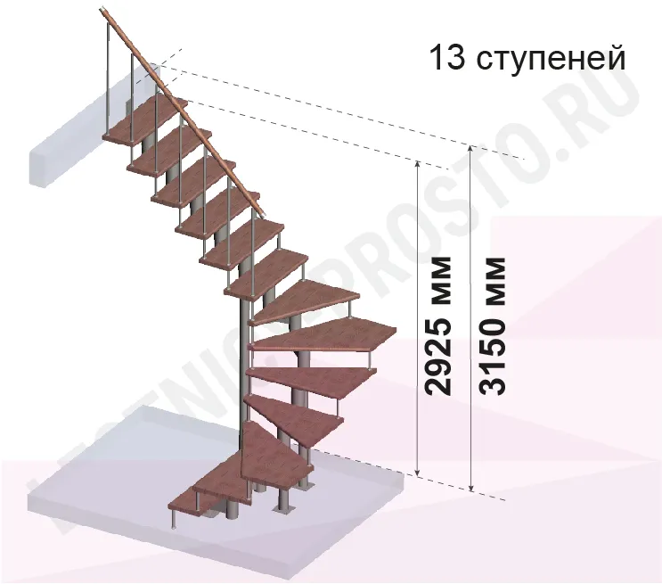 Количество ступеней до поворота - может быть любым , по запросу мы рассчитаем стоимость и сделаем чертеж-схему в соответствии с вашими параметрами. Так же, поворот лестницы может быть реализован через площадку. Звоните и пишите нам по всем возникающим вопросам: мы профессионалы в области лестниц и поможем правильно сориентироваться, не совершив ошибок!