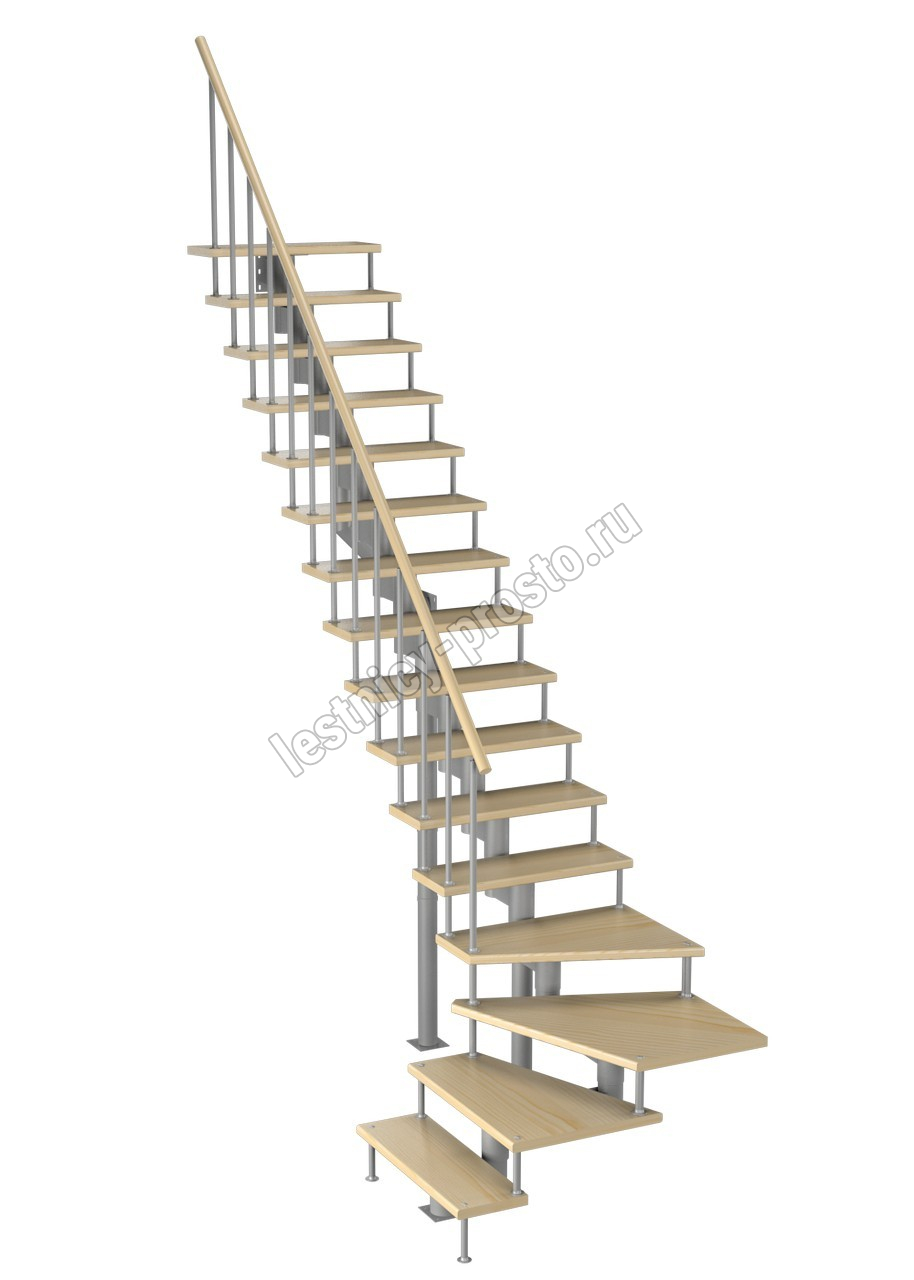 Модульная лестница Фаворит 180 2880-3040, Серый, Лиственница, Нержавеющая сталь