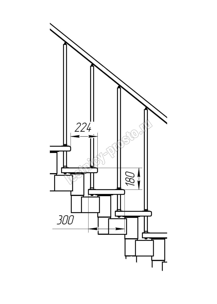 Модульная лестница Фаворит 180 3060-3230, Белый, Бук, Нержавеющая сталь