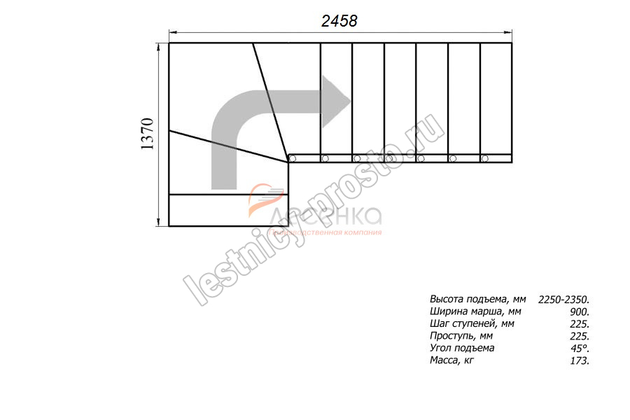 Модульная лестница Фаворит 225 2250-2350, Черный, Сосна, Нержавеющая сталь