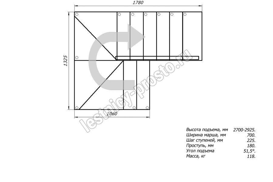 Высота лестницы 2700 - 2925 мм