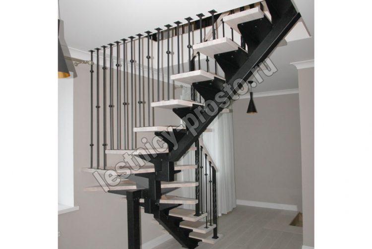 Лестница PROSTO MONO Г-образная h315 см, ступени лиственница |