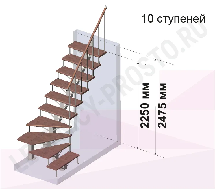 Лестница PROSTO MONO Г-образная h270 см, ступени хвоя |