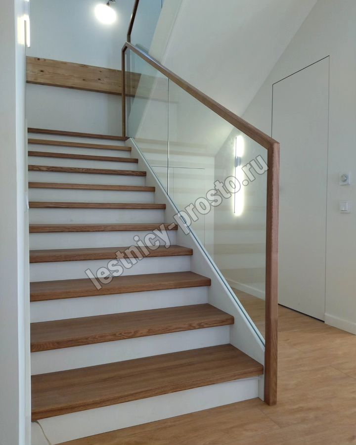Лестница на второй этаж с ограждением из стекла LP-1-4