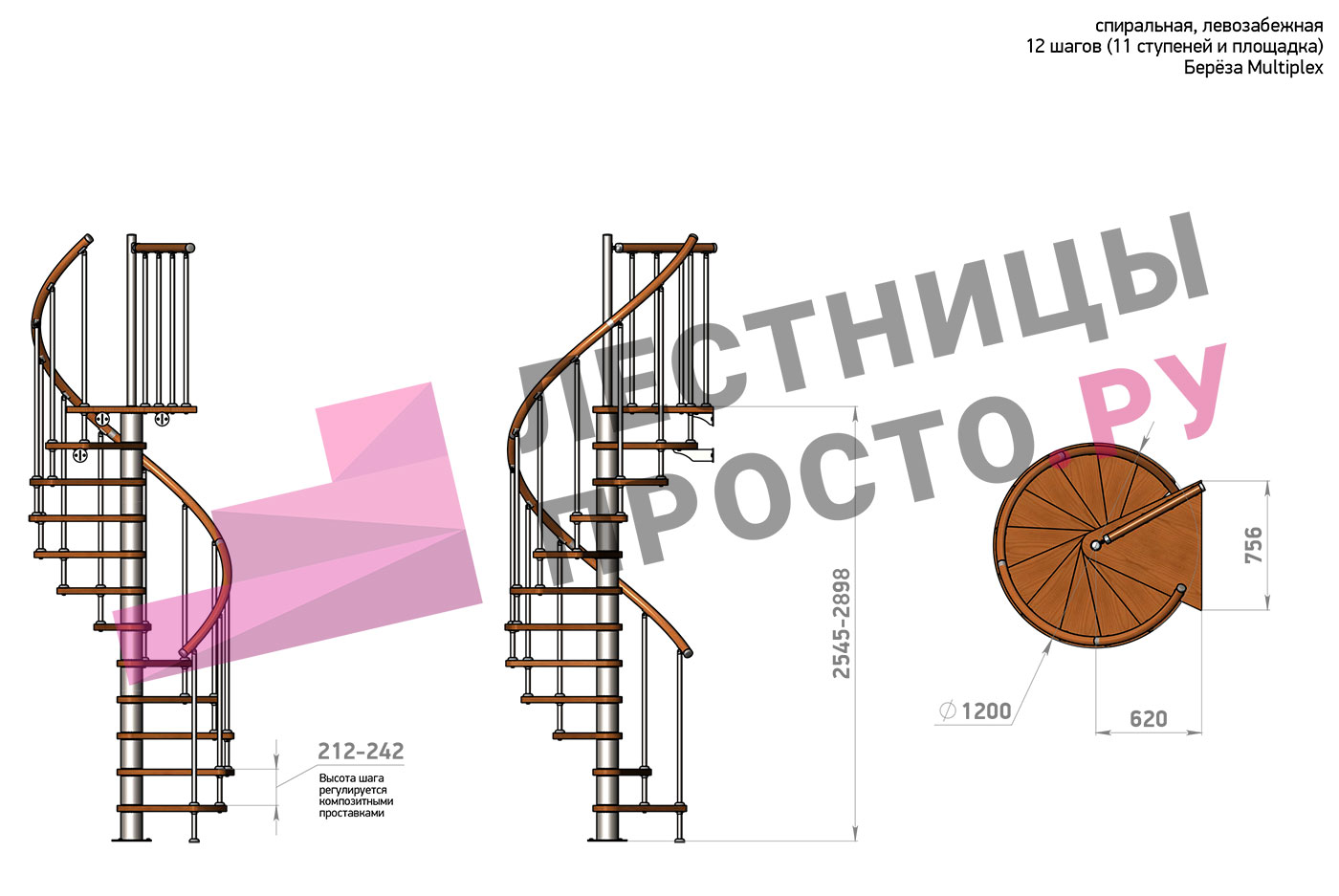 Решение об ориентации поворота лестницы принимается при сборке (комплект собирается и в правозабежную, и в левозабежную лестницу)