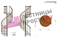 Ширина ступени между центральной колонной и поручнем ≈ 680 мм