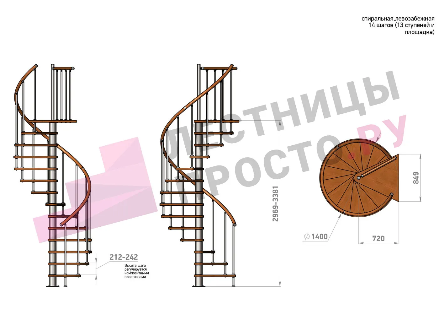 Винтовая лестница Prosto Spiral Black/Высота 2545 - 2898 мм