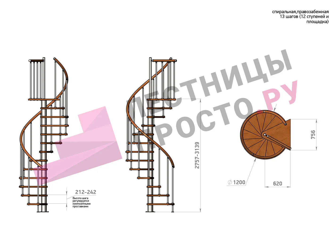 Винтовая лестница Prosto Spiral Black/Высота 3182 - 3623 мм
