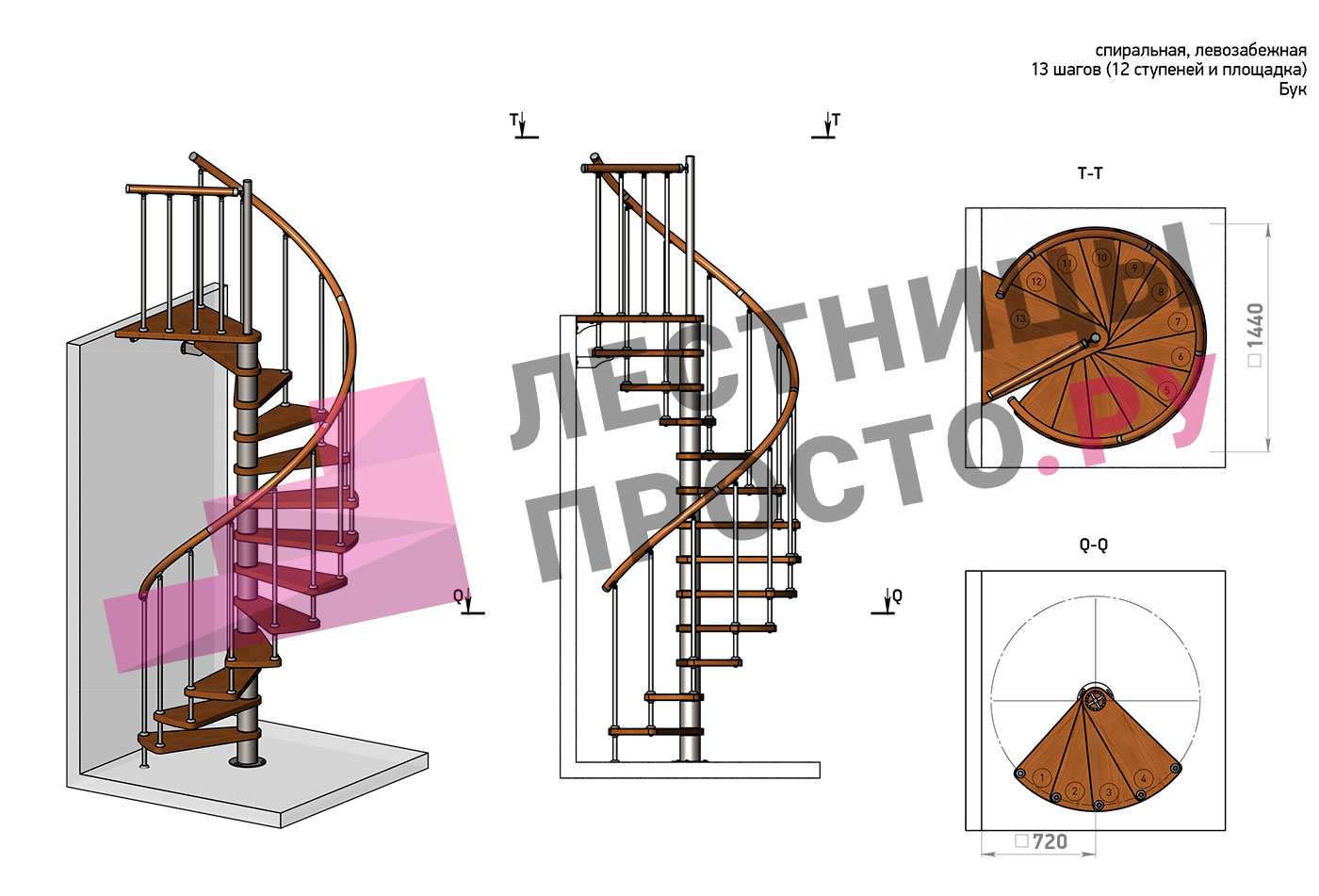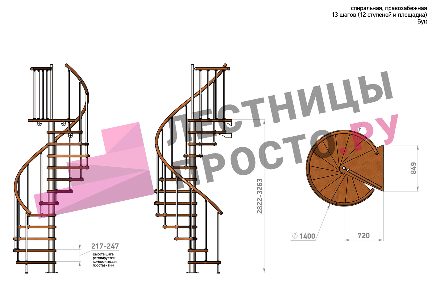 Винтовая лестница Prosto Spiral White D140см, h282.2-326,3 см, бук