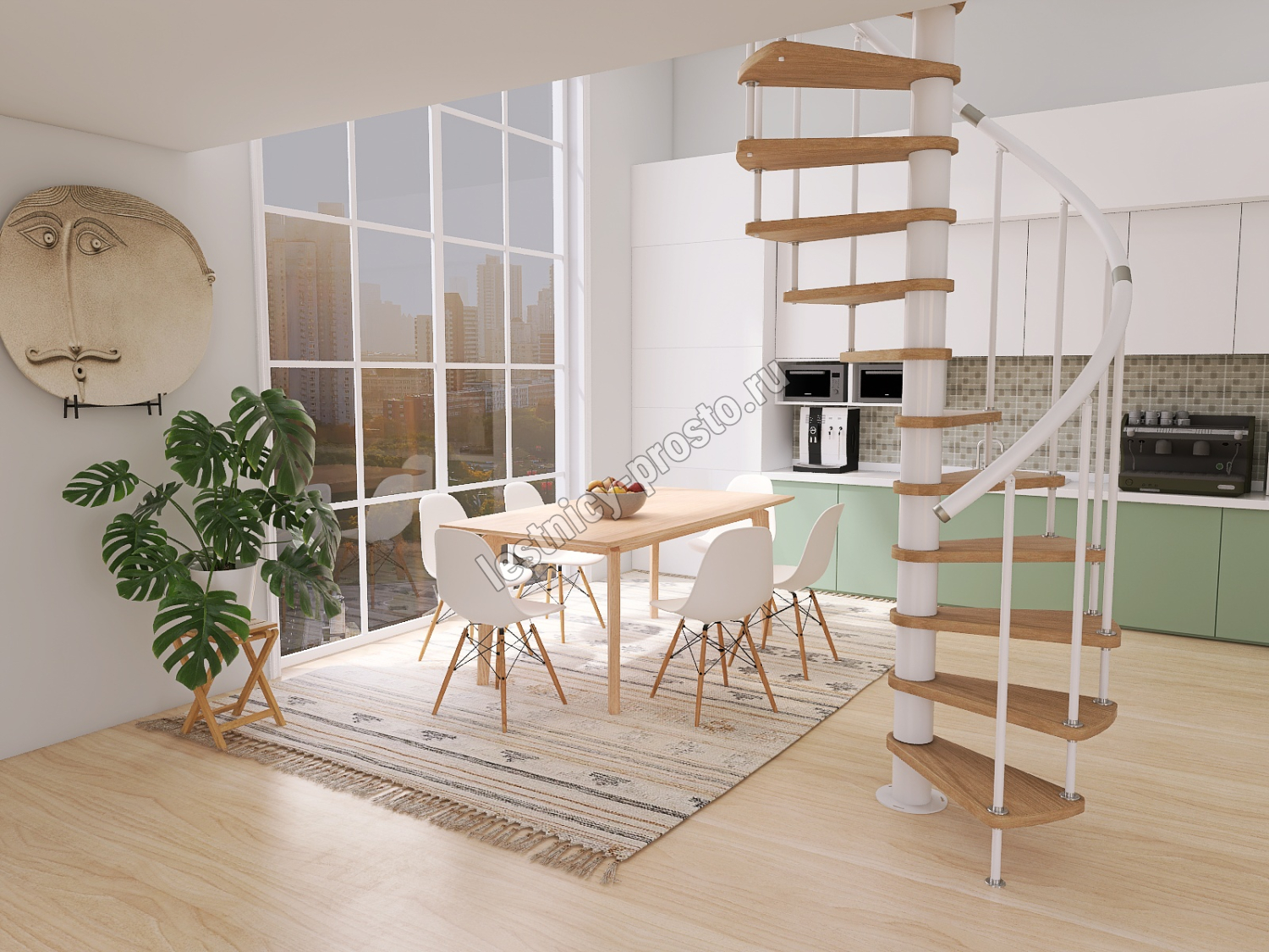 Винтовая лестница Prosto Spiral White D140см, h275.7-313.9 см