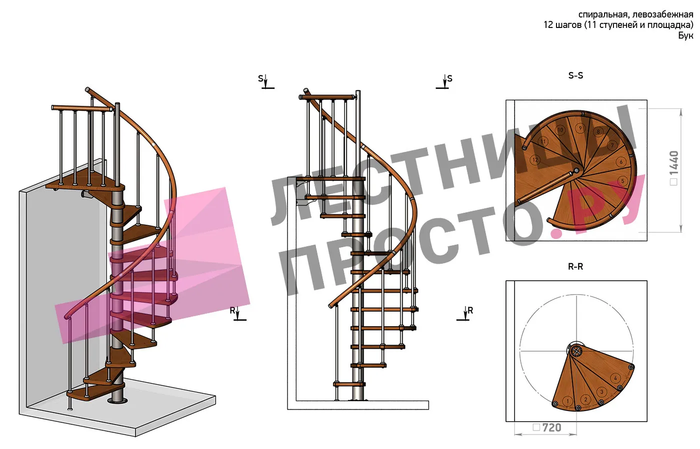 Винтовая лестница Prosto Spiral White D140см, h282.2-326,3 см, бук |