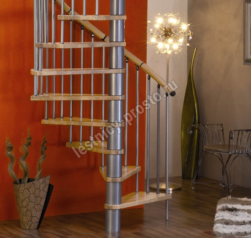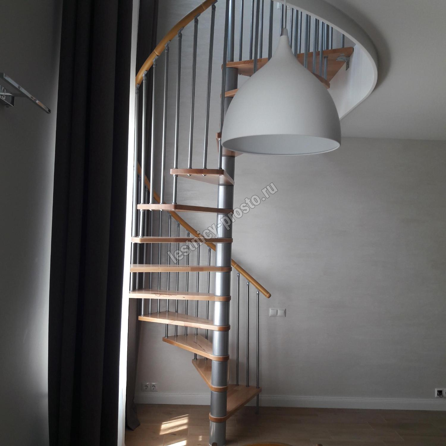 Винтовая лестница SPIRAL WOOD d160 см, серебро, лакированный бук