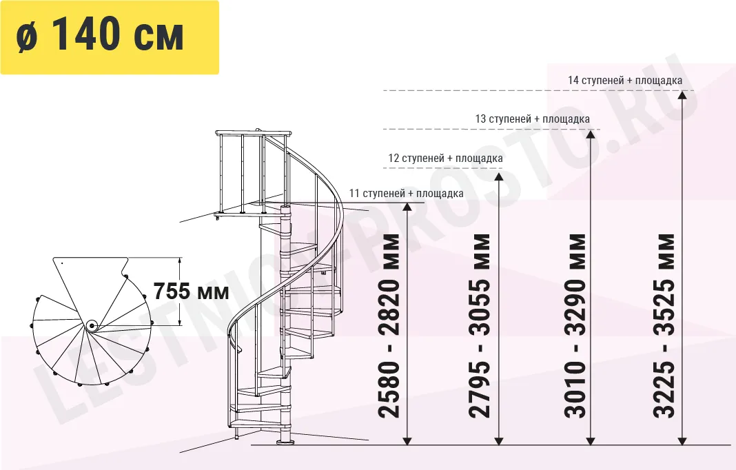 | Винтовая лестница Montreal Classic серая, d140 см, h258-282 см |