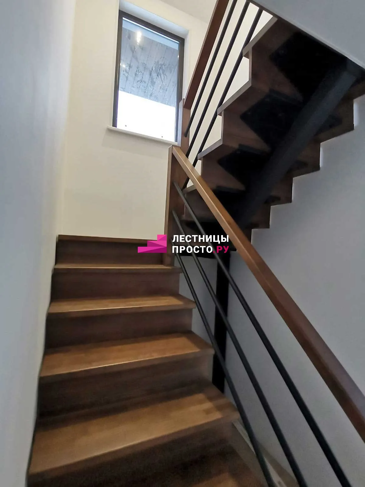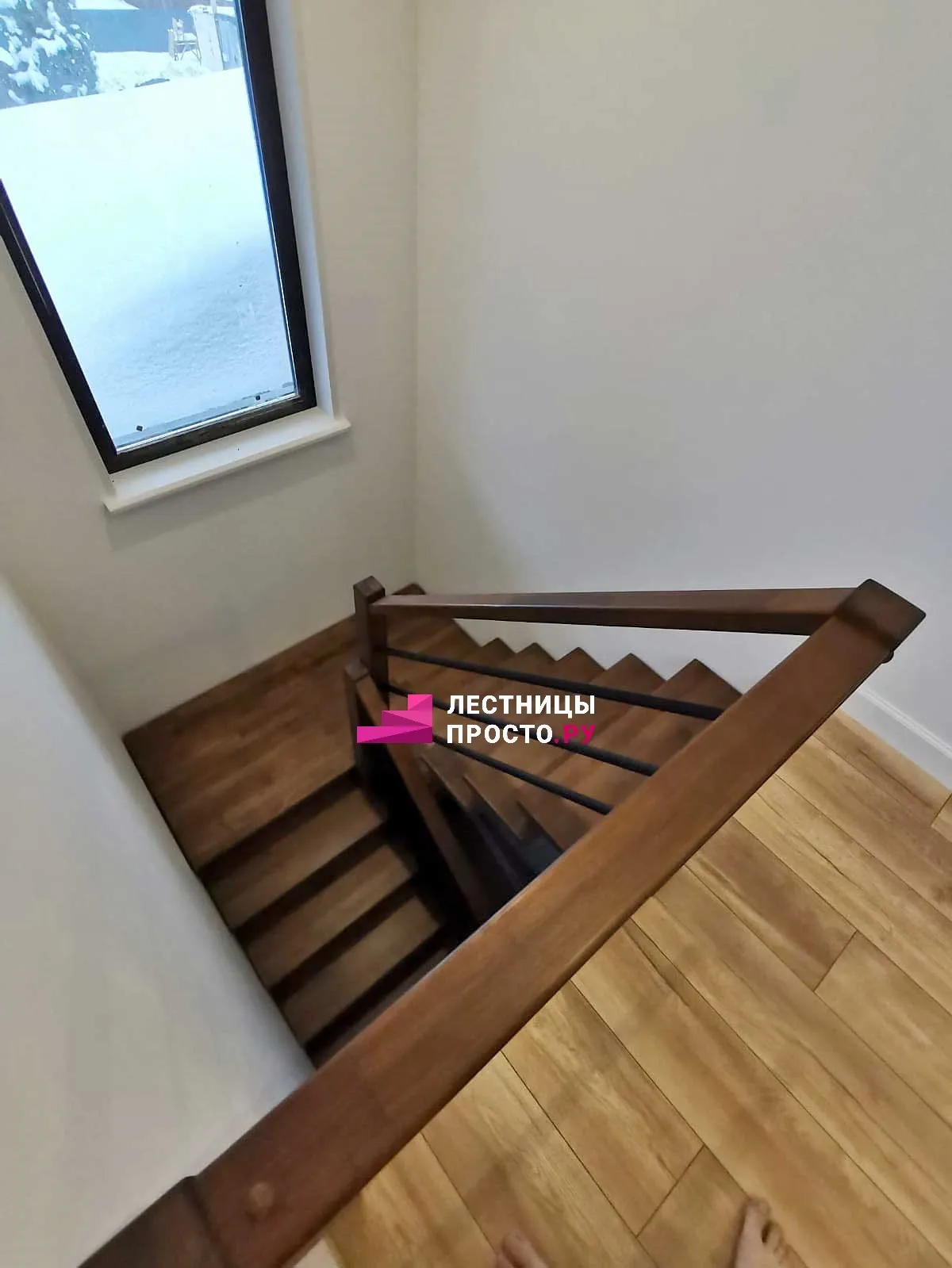 Отделка двухмаршевой бетонной лестницы деревом LP-1-44