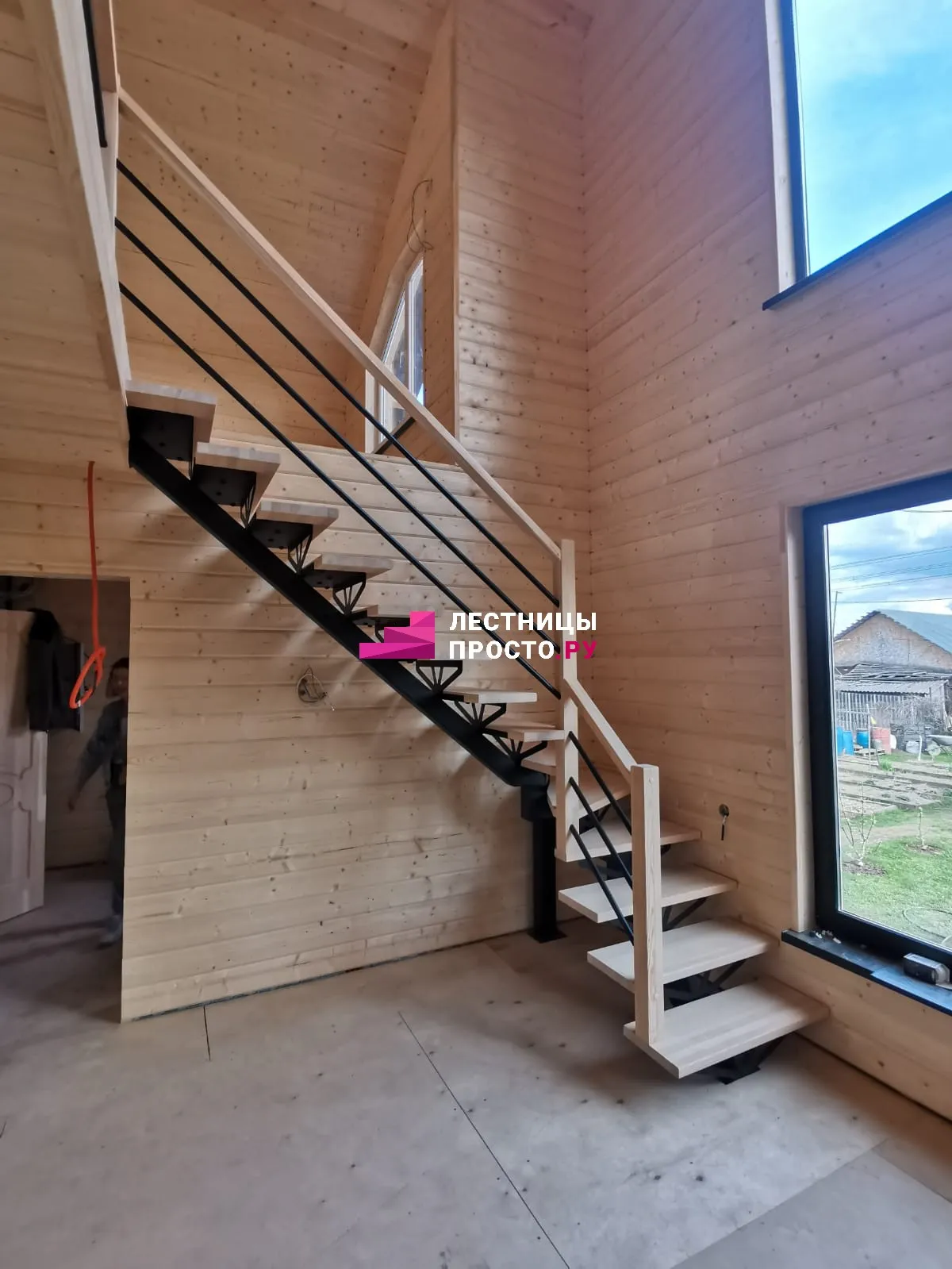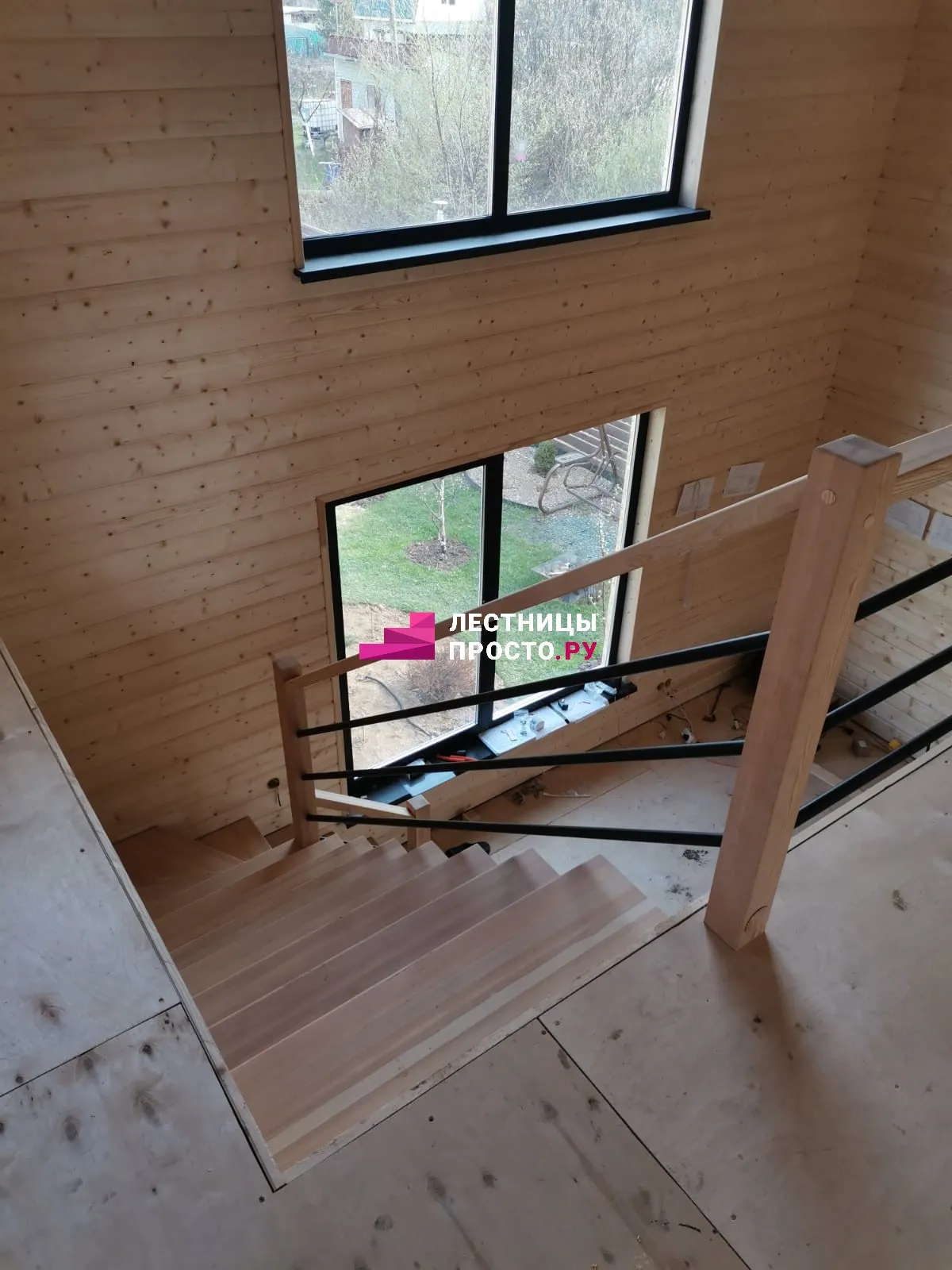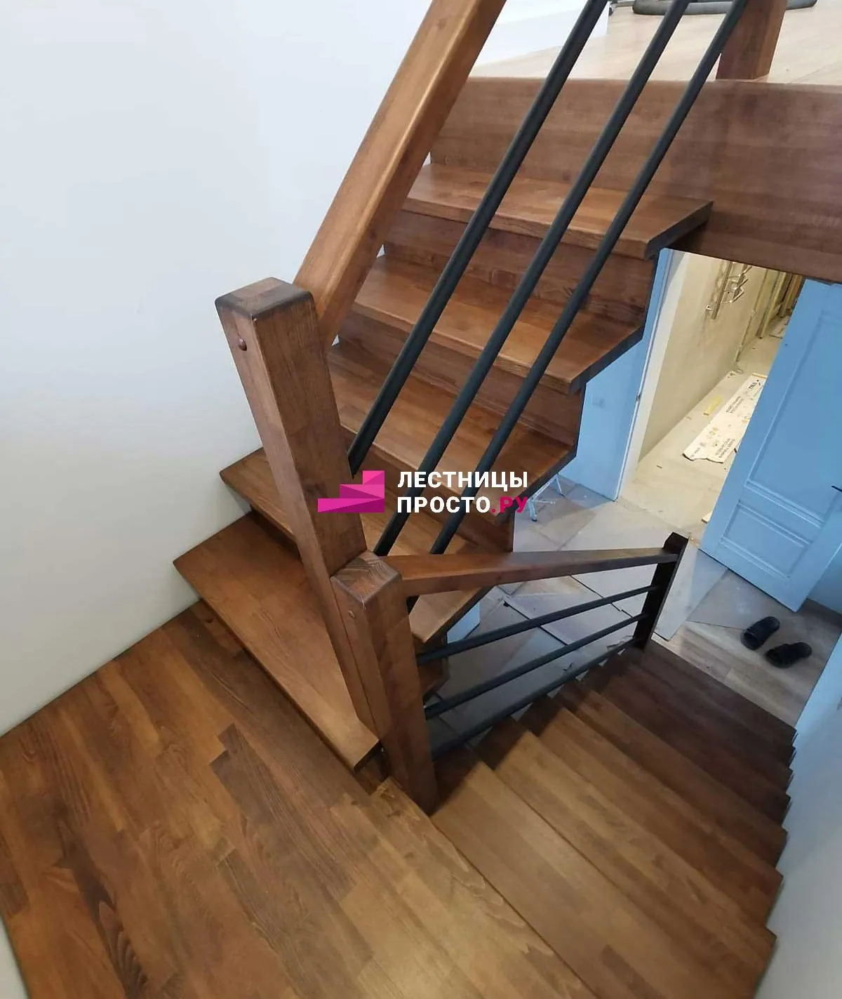 Лестница LP из сосны на второй этаж с поворотом на 180 градусов