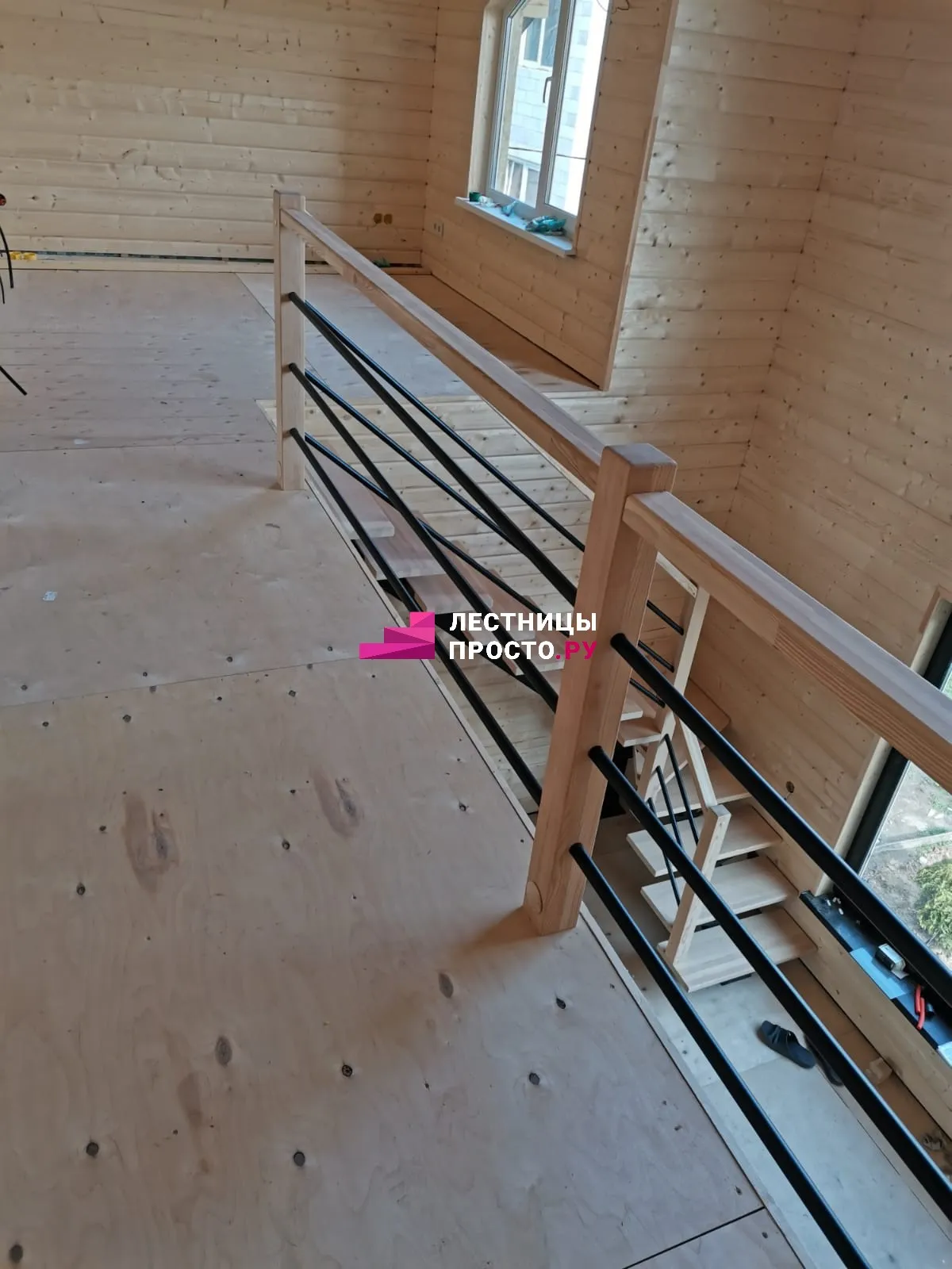 Лестница из сосны в частном доме с дополнительной балюстрадой